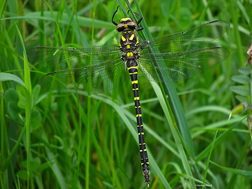 The following Saturday, it was relatively warm and rain free, and I found myself mooching down in the Wyre, ostensibly trying to catch up on the poor Fritillary Butterflies that had been so rain affected and hard to come by. It was here I had one of my most satisfying and rewarding encounters of the year, when I spotted a large determined looking dragonfly enter the clearing and settle. Tracking it down I was awestruck to see a stunning Golden-ringed Dragonfly obligingly resting up, a female.